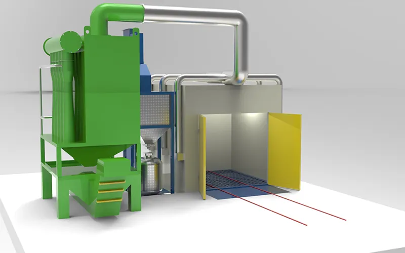 Yes. The sandblasting room is equipped with an automatic recovery and separation system. The abrasives that have been sprayed are collected and collected through the ground conveyor belt. They enter the separator to remove dust and impurities and are reused, which greatly reduces the cost of consumables and improves operating efficiency.