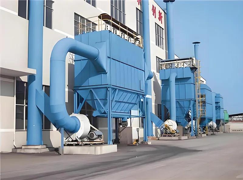 The dust removal system includes filter cartridges, dust collectors, fans, and piping systems.