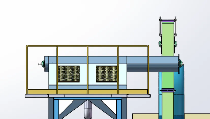 This cleaning room consists of a main and auxiliary cleaning rooms, which are large capacity chamber structures. The upper part of the room is box shaped and the lower part is conical. The steel plate thickness of the main room body is 10mm, and the steel plate thickness of the auxiliary room body is 6mm. Reinforcement ribs are made to enhance the strength of the room body.