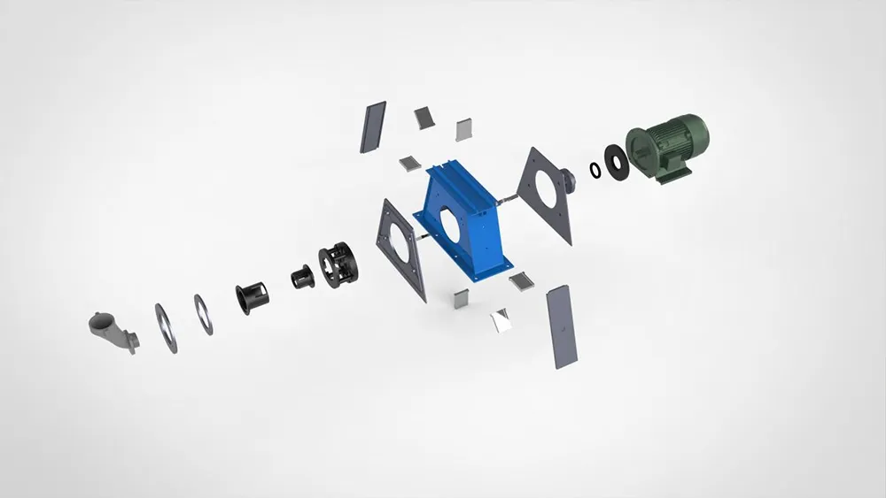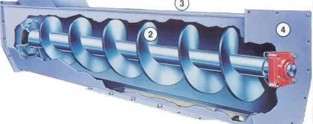 The lower part of the cleaning room is equipped with a spiral conveyor and a chute, which can collect the powder dust mixture, collect it and send it to the elevator. After the elevator sends it to the separator, they are composed of a cycloidal pinwheel reducer, a spiral shaft, a housing, and a seat bearing.